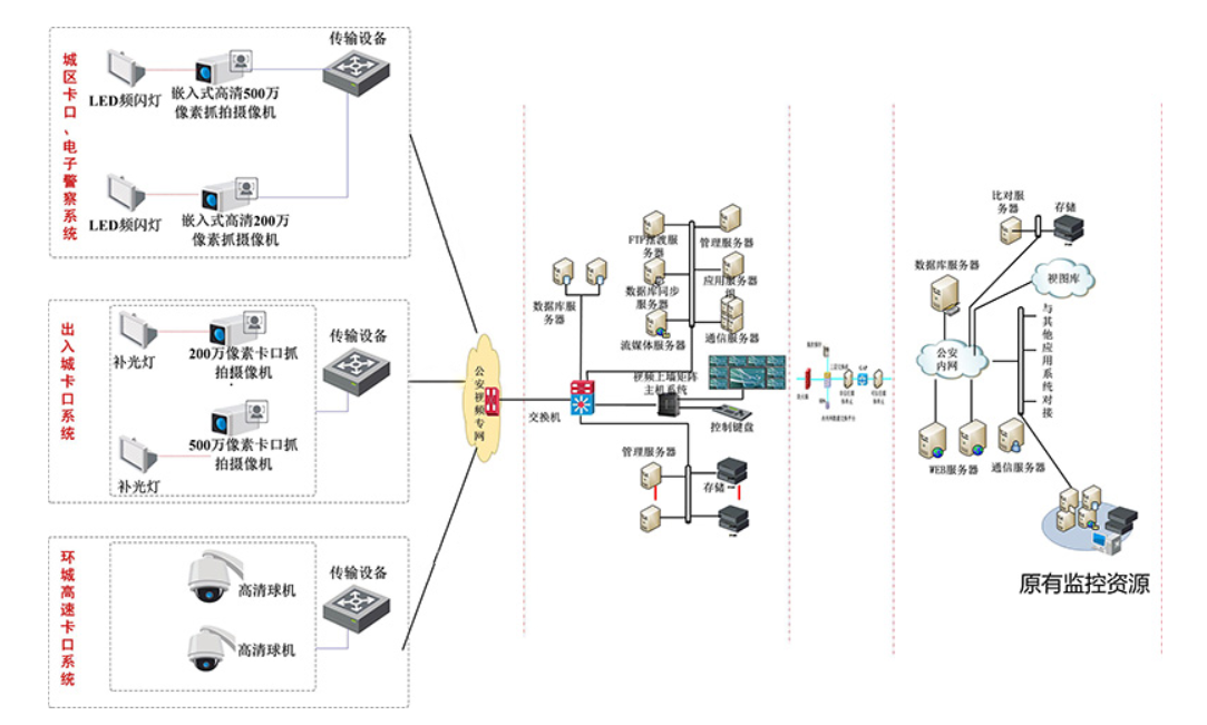 電子警察及交通卡口系統(tǒng)架構(gòu)圖: