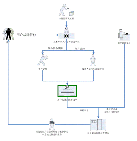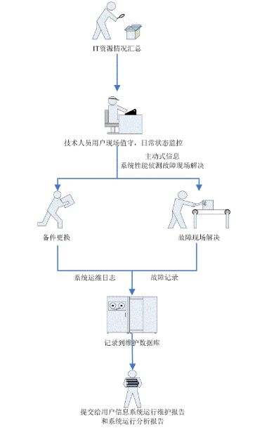 技術(shù)人員現(xiàn)場(chǎng)值守運(yùn)行維護(hù)服務(wù)的基本操作流程: